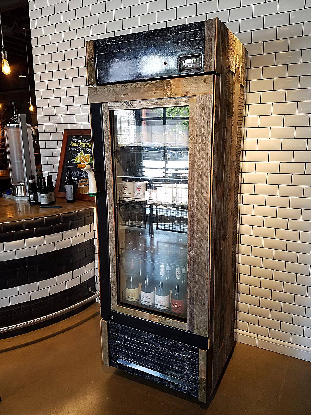 Covering a cooler in reclaimed barn wood.