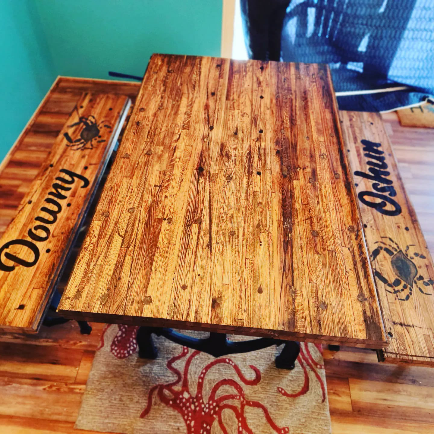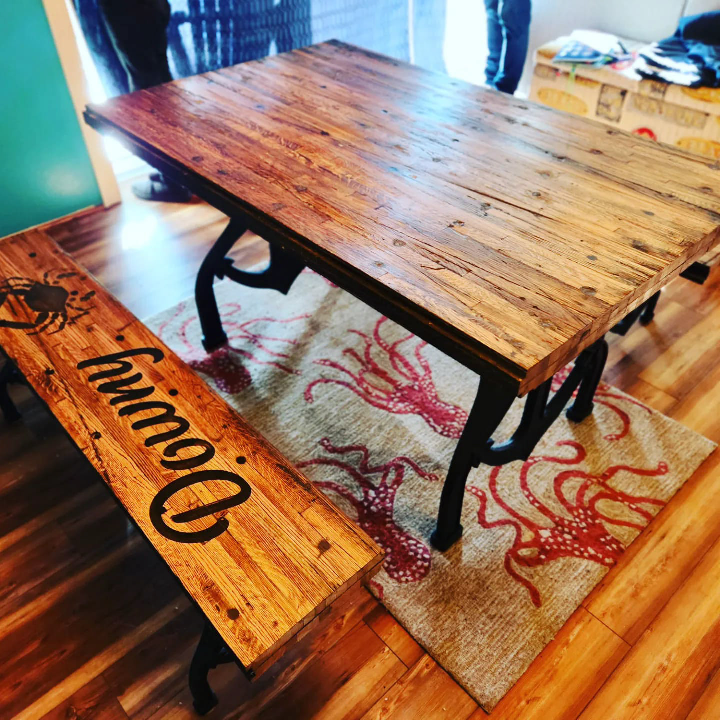 Reclaimed Box car floor dining table